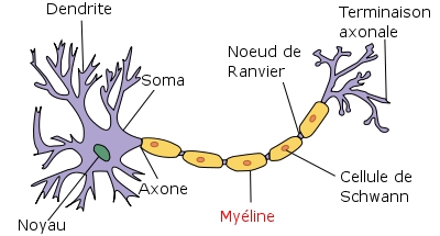 La myéline est une gaine de lipides et de protéines qui se trouve dans les oligodendrocytes ou les cellules de Schwann, spécifiques au système nerveux. Elle recouvre les axones comme une gaine plastique protège les fils électriques, de façon à mieux conduire l’influx nerveux.