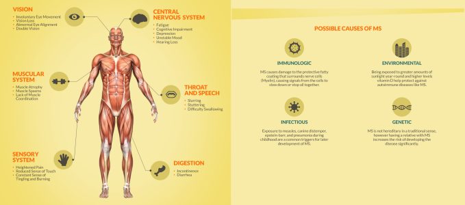 La grande diversité des symptômes de la SEP pourrait s’expliquer par le fait que la détérioration qui s’ensuit peut survenir dans n’importe quelle région du SNC. Les personnes atteintes de SEP ne présentent pas tous les symptômes de cette maladie, et il arrive souvent que ces derniers s’atténuent lors des rémissions.